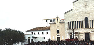 È risaputo che, ogni giorno, verso le tredici e verso l’Ave Maria, i fedeli, a gruppi più o meno folti, si riunivano sotto la clausura, su uno spazio da dove si vedeva una finestra della stanza di Padre Pio, e lì, recitando preghiere o cantando inni a Gesù o alla Madonna, attendevano la benedizione del “Padre”.