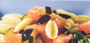 6. Cuocere gli gnocchetti in abbondante acqua salata. Scolarli al dente, versarli nel tegame con la salsa di melanzane e pomodori e farli saltare velocemente a fiamma vivace.