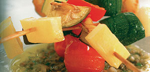 Spiedini dell’orto con salsa ai capperi dal Numero 15 del 14 aprile 2013