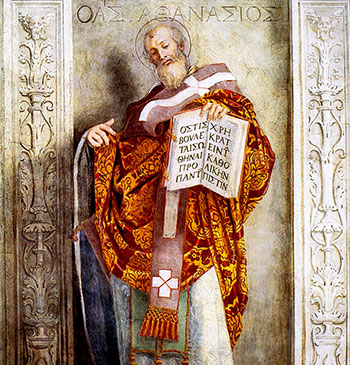 Qualche cenno biografico. Egli nacque ad Alessandria nel 295. Nel 325 presenziò al celebre Concilio di Nicea, in qualità di diacono di Alessandro ch’era vescovo di Alessandria. Concilio famoso quello di Nicea perché fu lì che venne solennemente proclamata la Fede nella Divinità di Cristo in quanto consustanziale al Padre. Fu lì che fu stabilita la definizione per intendere l’uguaglianza del Figlio con il Padre: homoousius, che vuol dire “della stessa sostanza”. Attenzione a questa definizione (homoousius) perché questa sarà la sostanza del contendere.